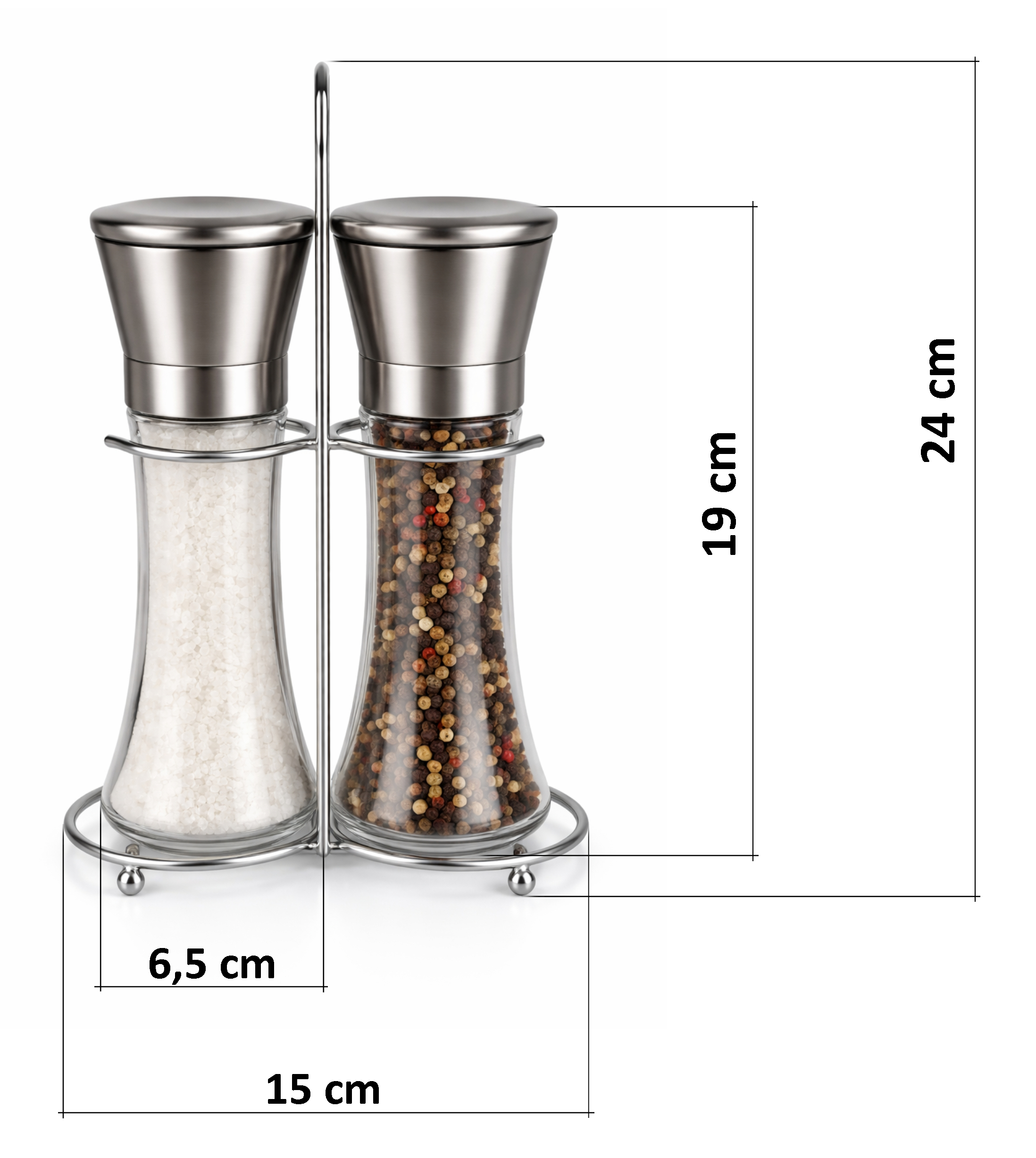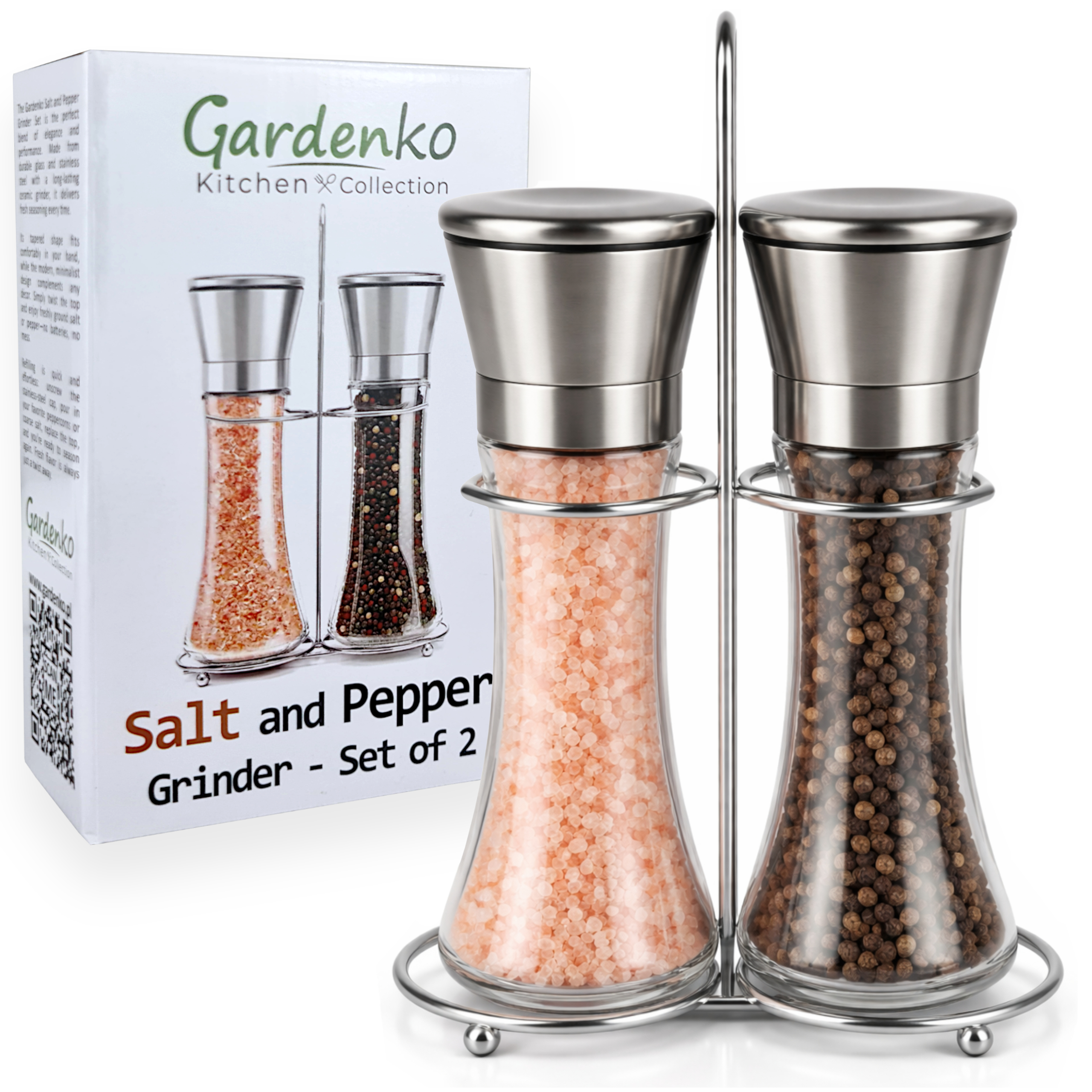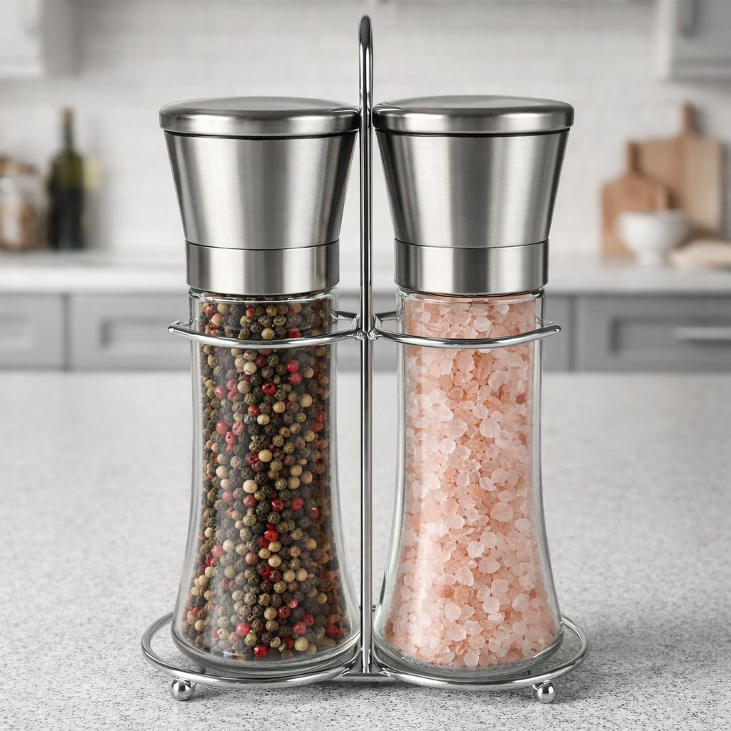 Elegancki i funkcjonalny zestaw młynków, który łączy nowoczesny wygląd z wygodą codziennego użytkowania. Wykonany z wysokiej jakości szkła i stali nierdzewnej oraz ceramicznego żarna. Idealny do każdej kuchni.