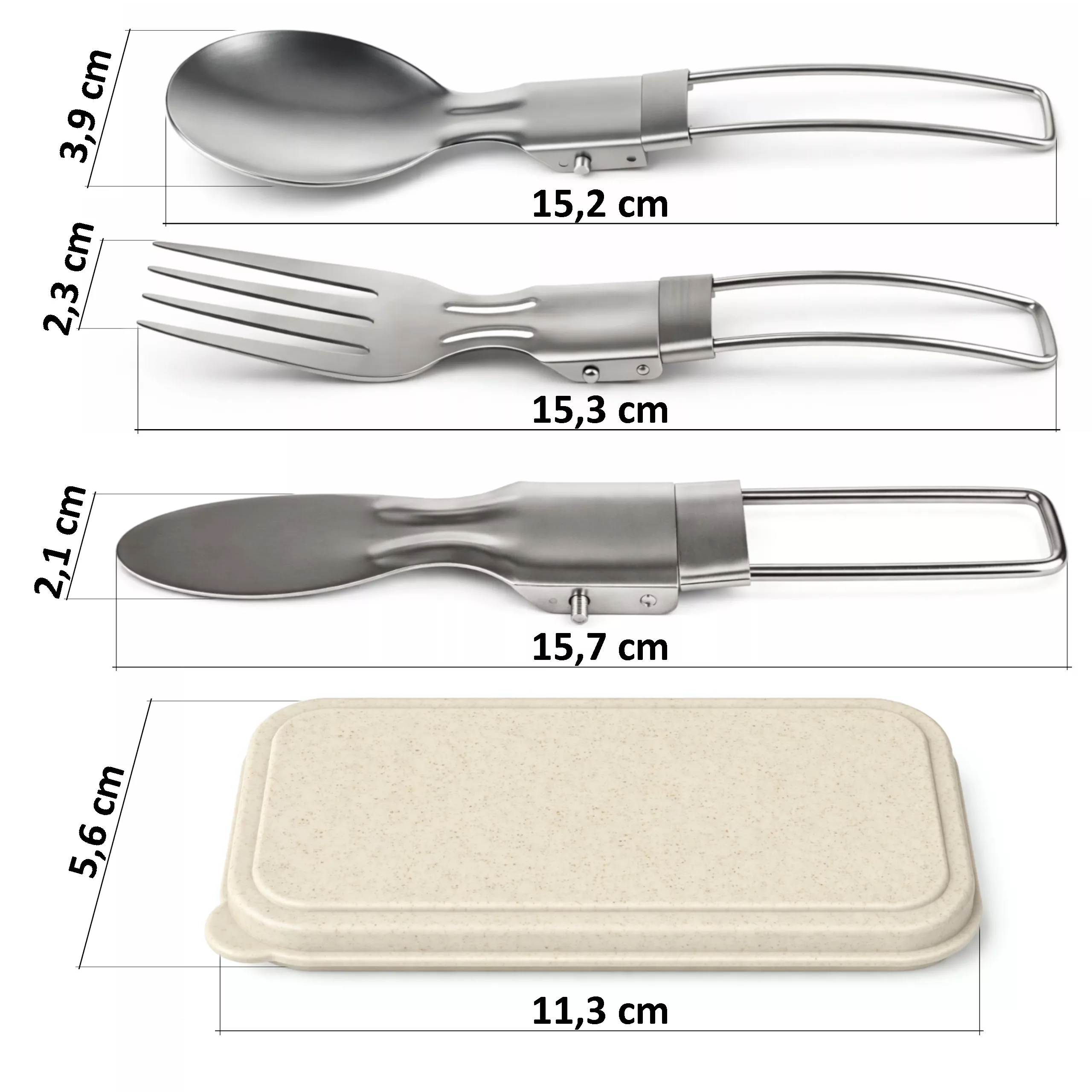 Praktyczny i kompaktowy zestaw składanych sztućców to idealne rozwiązanie dla osób jedzących poza domem. W jednym komplecie otrzymujesz łyżkę, widelec i nóż, zawsze pod ręką. Minimalistyczny design i solidne wykonanie sprawiają, że zestaw sprawdzi się zarówno w pracy i w szkole, jak i w terenie.