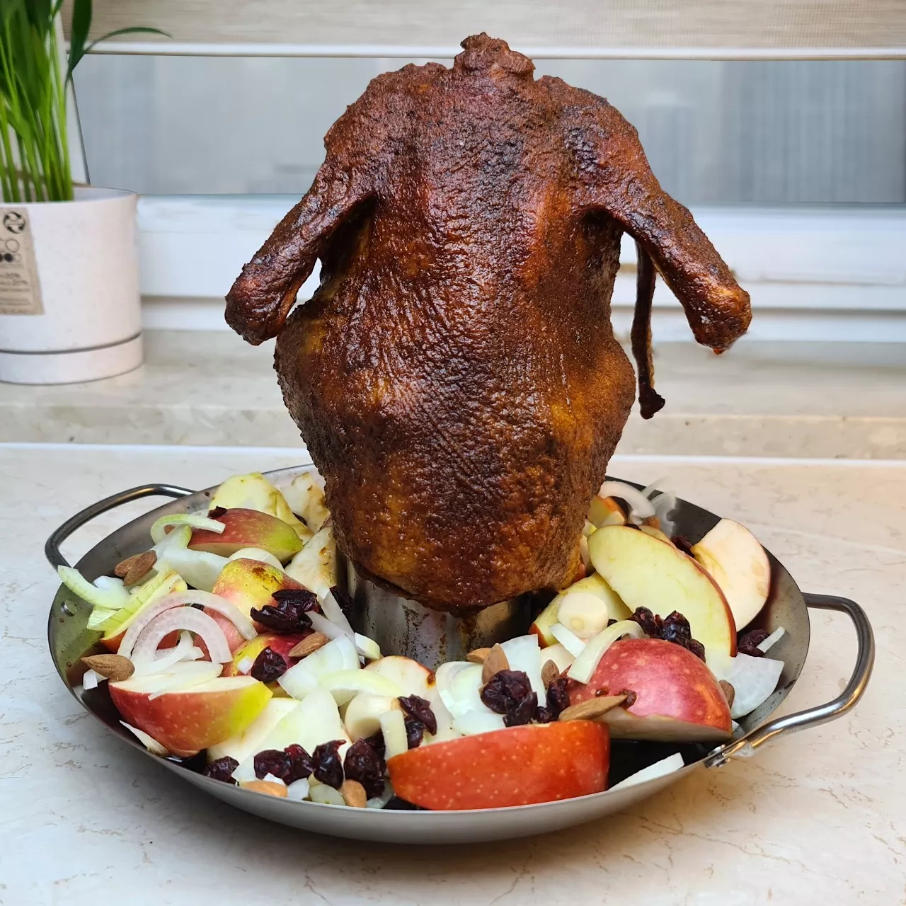 Stojak sprawdzi się nie tylko w przypadku klasycznego kurczaka. Dzięki swojej stabilnej konstrukcji możesz również przygotować inne rodzaje drobiu, takie jak kaczka czy mniejszy indyk. Środkowy pojemnik oraz tacka doskonale nadają się do pieczenia z dodatkiem warzyw - umieść wokół kurczaka kawałki ziemniaków lub jabłek, aby przesiąkły aromatycznymi sokami z mięsa i stworzyły pyszny, pełny posiłek na jednej tacy.