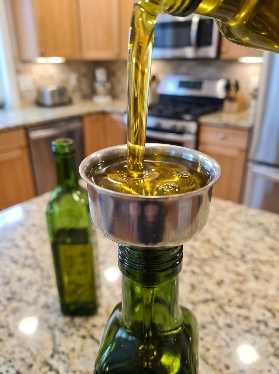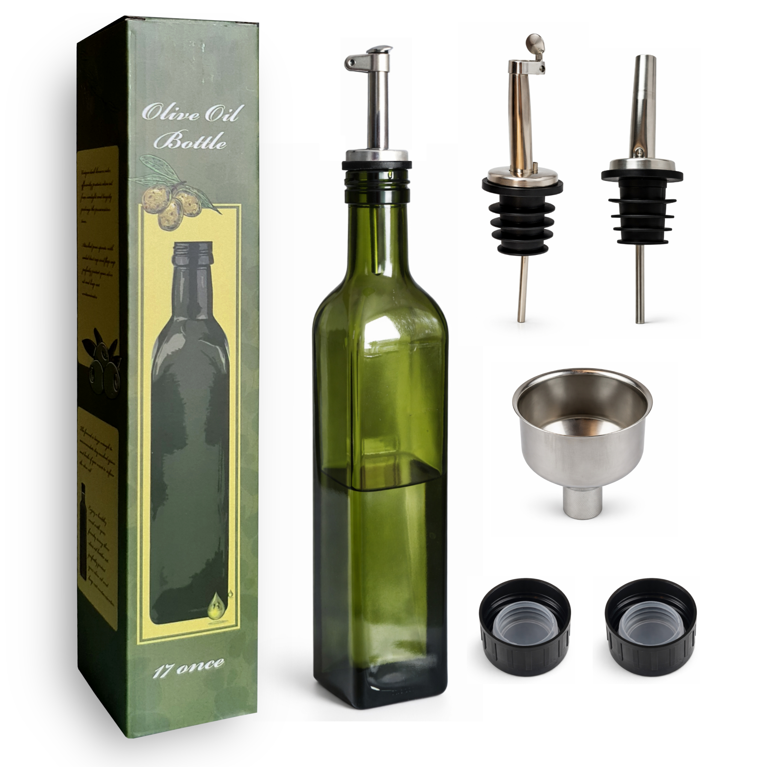 Elegancki zestaw do przechowywania i dozowania oliwy. Butelka z zielonego szkła chroni oliwę przed światłem, a dozowniki umożliwiają nalewanie bez kapania. Idealny do codziennego gotowania, sałatek oraz jako praktyczny i efektowny prezent.